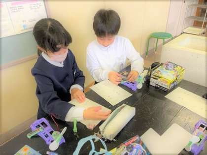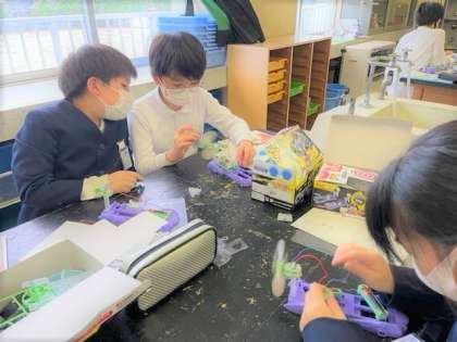 理科では電流のはたらきについて学習しています。今日は電池を2つにするとモーターの回る速さはどうなるのかを調べました。今日の実験では電池のつなぎ方でモーターの回る速さが変化することが分かりました。