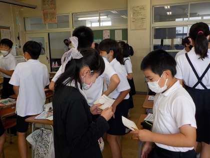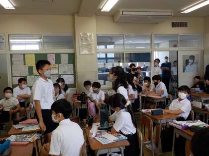 今日は、学習参観日でした。6年生は外国語科の授業を見ていただきました。途中、自己紹介や宝物の紹介の会話に、保護者のみなさんにも参加していただきました。