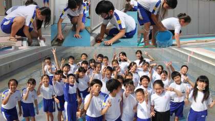 子供たちは、溝にたまった1年間分の泥や砂を一生懸命きれいにしていました。