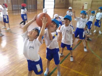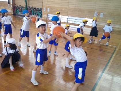3時間目の体育では、「ボール送り」をしました。
