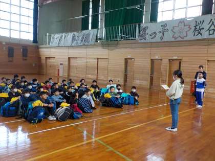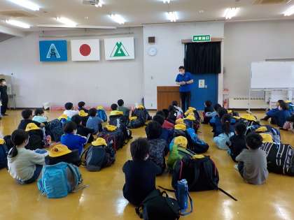 宿泊学習二日目の退所式、帰校式の様子です。二日間をしめくくる式に最後まで集中して参加しました。