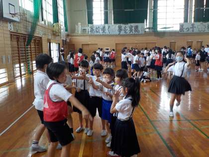 今日は児童集会を行いました。昨年度の3学期、インフルエンザの流行により実施できなかったこともあり、集荷委員会のメンバーは、張り切っていました。運営委員会も今年度のあいさつのテーマを発表しました。