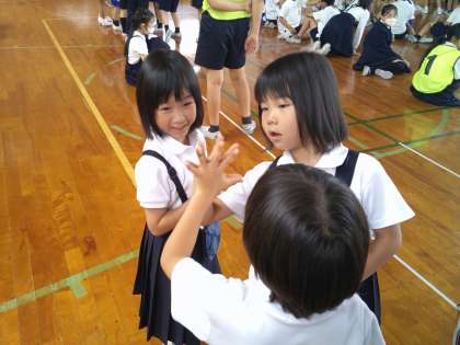 なかよし班でゲームやクイズをしているときには、笑顔満開でした。