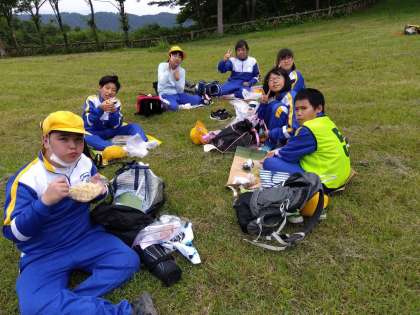 子供たちが待ちに待った昼食の時間です。弁当をおいしくいただきました。
