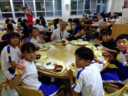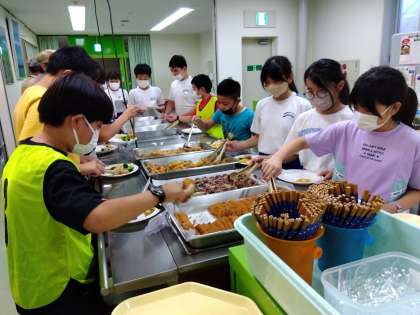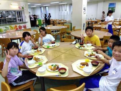 夕食の時間です。おかわりをするほど食欲旺盛な子供たちです。