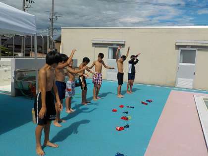 今日も、半数以上の6年生がプールに来ていました。夏休みの生活リズムとして位置付いている6年生も多いようですね。プールでは、準備運動も手慣れたもので、下級生の先頭に立って体操していました。今日も暑さ指数が高く、10時には切り上げになりましたが、時間まで精一杯活動していた6年生です。このプールで活動できるのも、あと3回となりました。存分に楽しんでほしいと思います。