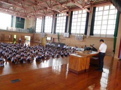 校長先生から子供たちには、「夏休み、保護者や先生たちの注意をよく守り、安全に過ごし、本日元気に登校してくれたこと」に感謝の言葉が伝えられました。