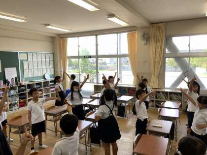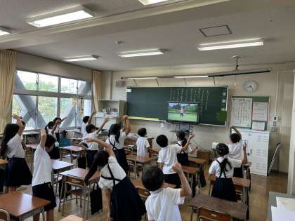 まだまだ暑い日が続いているので、朝のトレーニングは室内でラジオ体操とリズムダンスに取り組みました。