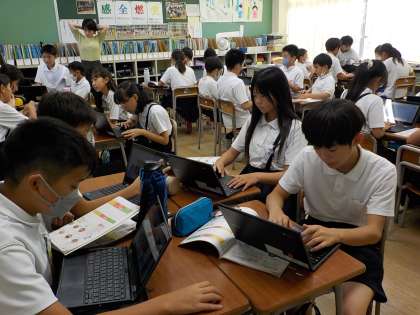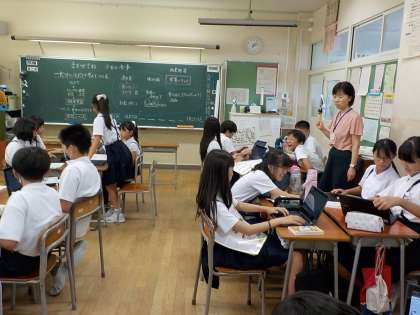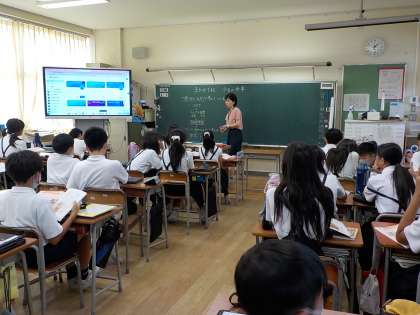 家庭科の学習では、一食の献立を考え、グループで作るという学習が始まりました。献立を考えるに当たり、栄養のバランスの他にも費用や、季節による旬のもの、食べる人の好みや味加減など、考える要素がたくさんあることが分かりました。最終目標は、学校で作った後、自宅で作ってみることです。どんなメニューにしようか、グループで、楽しそうに話し合っていました。