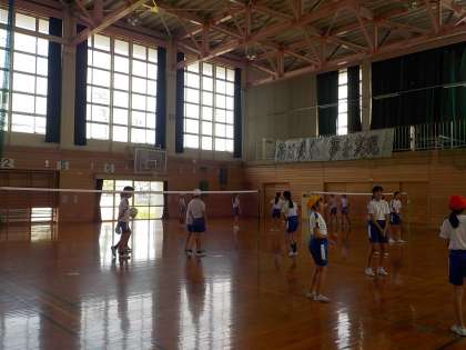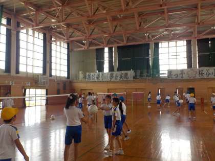 今日は、生憎の雨となりました。久しぶりの雨。恵みの雨かもしれませんが、6年生は体育の時間、体育館でネット型の球技、ビーチボールに取り組みました。6チームに分かれて、チーム練習を中心に行いました。後半は、ゲームの進め方について確認し、次回からはゲーム形式で取り組んでいきます。
