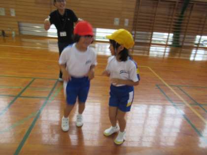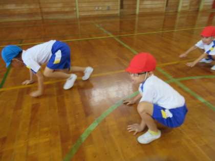 体育では、いろいろな生き物になりきっています。