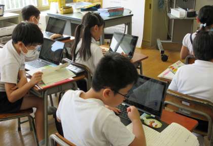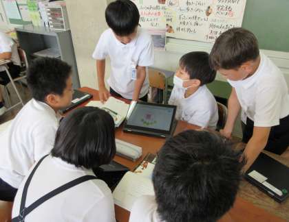 国語科では「ごんぎつね」の学習をしています。今日は「ごん」はどんなきつねなのかということを、クラゲチャートを使って、理由を明確にしながら考えました。教科書をじっくり読みながら考えたり、自分の考えを友達に伝えたりしていました。