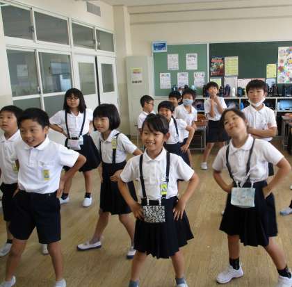 朝のトレーニングの時間には、熱中症対策のため室内でリズムダンスに取り組んでいます。いろいろなリズムに合わせてダンスをしています。朝から元気いっぱいに取り組む子供たちです。