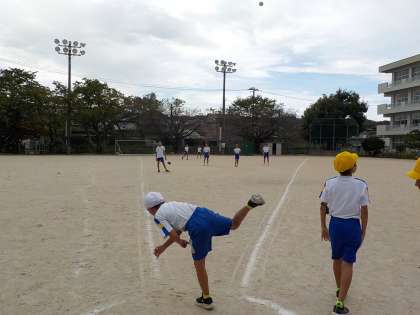 今日の体育の時間、チャレンジ陸上記録会に向けて、3種目をローテーションで練習しました。50m走では、「位置について」の号令でしっかり止まり、ソフトボール投げでは、投げ終わるまで円から出ないようにし、走り幅跳びでは、助走をしてもしっかりと踏み切ることができるようにポイントを意識しながら練習しました。