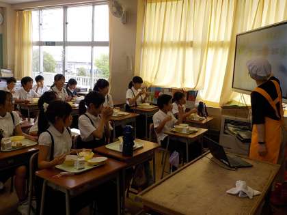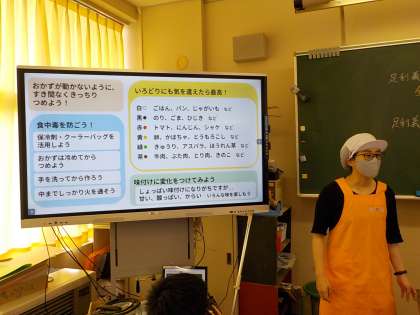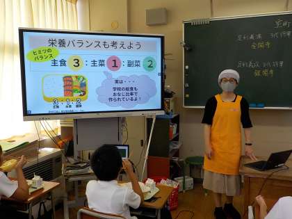 今日は6年教室で、お弁当についてのお話がありました。6年生は、家庭科の学習で献立について考えているところだったのと、今週の金曜日、お弁当の日になることもあり、みんな真剣に話を聞いていました。
