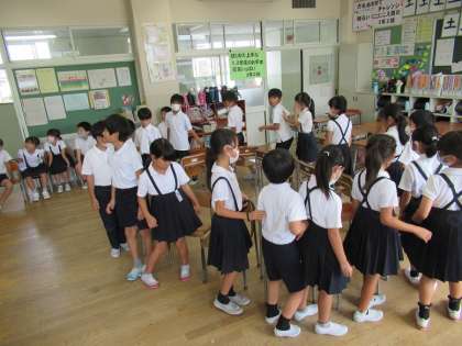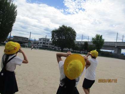 理科の学習では、遮光プレートを使って太陽を観察しました。これから、太陽がどのように動くか観察していきます。休み時間には、クラスみんなで楽しく遊びました。