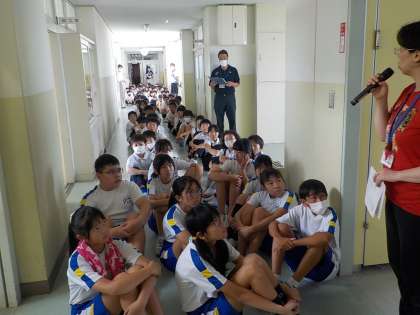 避難訓練(地震、津波対応)が行われました。地震が発生し、津波警報も発令されたことが校内放送を通して、全校児童に伝えられました。