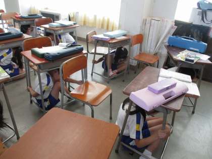 今日の避難訓練の様子です。今回は、地震が起きた後、津波の危険があることを想定して4階の音楽室に避難をしました。地震の音が鳴るとすぐに机の下に避難している姿が見られました。これからも「自分の命は自分で守る」という意識をもって過ごしていきましょう。
