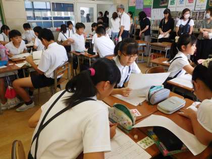 学習参観、学校保健委員会を開催しました。家族が見守る中、子供たちは真剣な表情で授業に参加していました。あるクラスのグループ学習では、友達と楽しく作業をしたり互いの意見を認め合ったりする温かい姿も見られました。