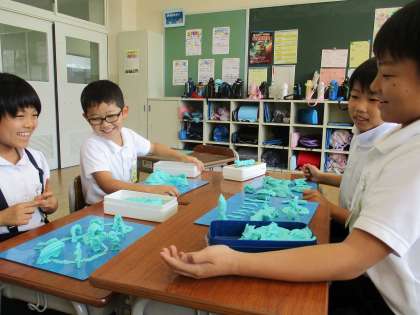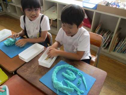 図画工作科で「にぎにぎねん土」の学習を行いました。ねん土をにぎるとどのような形ができるのか、夢中になって取り組んでいる姿が見られました。