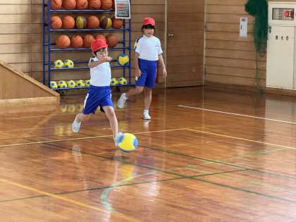 体育科では、キックベースボールを更に楽しくするため、ボールを蹴る練習に取り組みました。遠くに飛ばすことをイメージしながら何度もボールを蹴り、コツをつかもうとする子供たちです。
