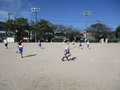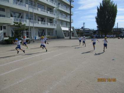 秋晴れのもと、50mを思い切り走りました。その後は学年でけいどろをしました。