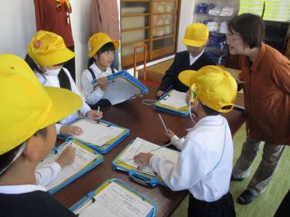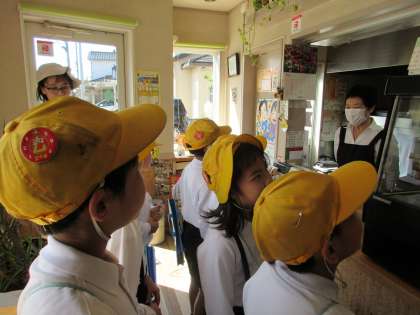 グループに分かれて町たんけんに行きました。インタビューをしたり、いろいろな商品を見せてもらったりしました。桜谷で頑張っている方の「すてき」をたくさん見つけることができました。