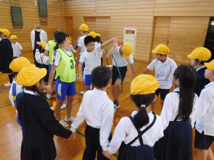 集会委員会が企画し、3時間目、縦割り班で「校内オリエンテーリング」が行われました。各グループの6年生が中心となり、各ゲームのルールを班員に分かりやすく説明するなど、楽しく活動する姿が見られました。
