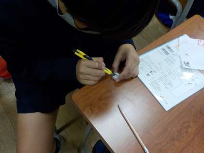 今日は、消しゴムはんこ作りの2回目でした。できたはんこを押してみて、細かいところを修正したり、形を整えたりしました。一文字とはいえ、なかなか味があり、素敵なでき映えでした。次回は、絵手紙にチャレンジし、このはんこも押す予定です。
