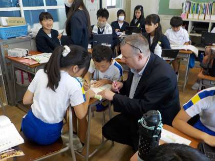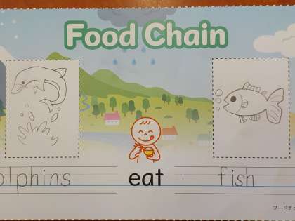 今日の外国語の時間は、一人一人がカードに「What do 〇〇 eat?」「〇〇 eat 〜〜.」を書きました。何を食べるのか分からない場合は、ALTの先生に聞いたり、端末で調べたりししていました。カードには、絵で表現する部分もあり、みんな、楽しそうに取り組んでいました。完成した子は次回のコミュニケーションタイムに向けて練習をしていました。