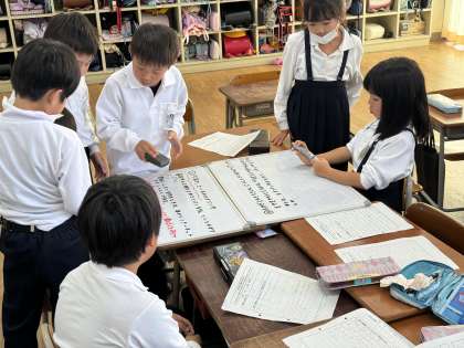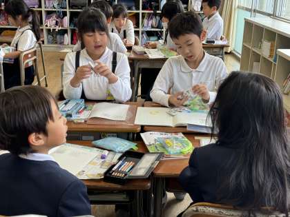 算数科の学習では、九九カードを使ってビンゴや簡単なゲームをしながら九九を覚えました。