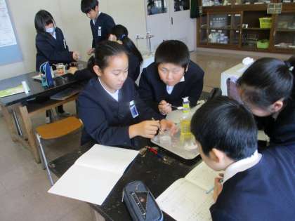 物のとけ方の学習をしている5年生。