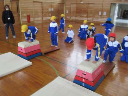 今日は準備・片付けの仕方や跳び乗り・下り、またぎ乗り・下りの学習をしました。
