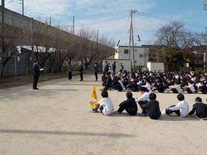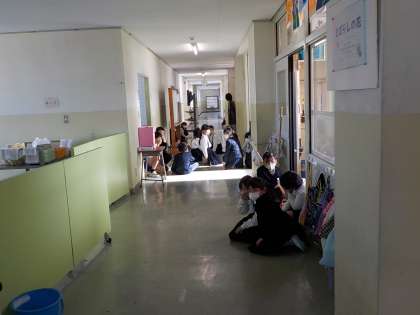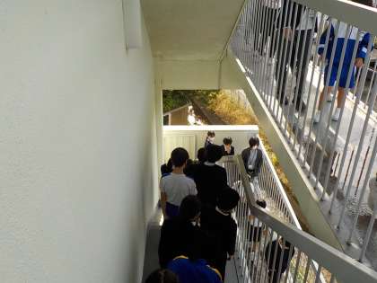 今日は、清掃の時間に火災が発生したという想定で、清掃のグループごとに安全に避難する訓練を行いました。