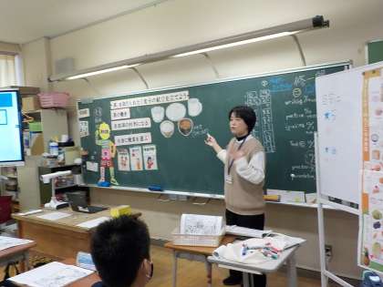 今日は、栄養教諭の先生から、先日行ったスポーツに関するアンケートをもとに、鉄分をとるための献立を考える学習を行いました。鉄分を吸収しやすくするためにはビタミンCも一緒に食べることが大切だということを学び、子供たちはそれぞれの献立を考えていました。次回は、紹介し合う活動を行う予定です。