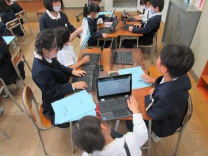 体育の「スライドサッカー」では、チームプレーでシュートが決まるととても嬉しそうでした。総合では、校外学習で見付けた桜谷の魅力についてグループでまとめています。理科の「物の重さをはかろう」では、塩と砂糖の体積を同じにして、重さを比べました。