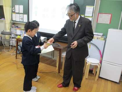 1学期のセミの初鳴き調査の結果報告会がありました。野帳に書いてがんばって調査した人にはプレゼントがあり、とても嬉しそうでした。