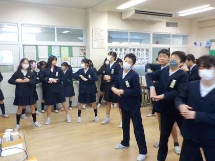 今日の朝のトレーニングは、ダンスでした。6年生は、運動委員会が作成した動画を見ながら、リズムに合わせて体を動かしていました。動画を作成した運動委員は、少し恥ずかしそうでしたが、みんなが真剣に踊っているのを見て、うれしそうでした。