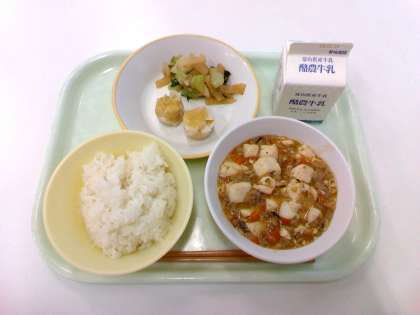 マーボー豆腐を作り始めると、大きな釜で生姜とにんにくを炒めるいい匂いが給食室から漂ってきます。