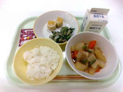 精白米、牛乳、小松菜、大根、こんにゃく です。
