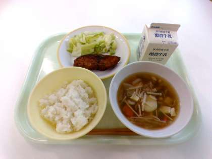 精白米、しいら、えごまの葉、木綿豆腐、えのきたけ、牛乳 です。