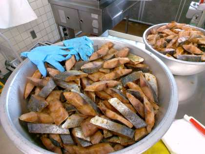 調理員さんが他の作業をしている隙にパシャリと撮りました。