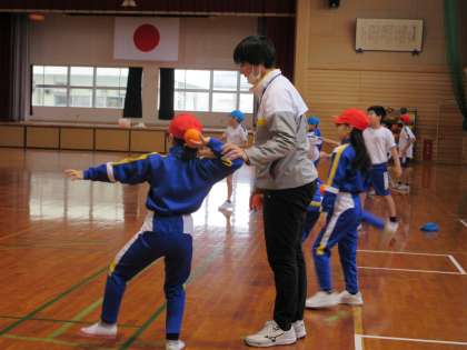 指導員の方にボールを投げる運動について指導して頂きました。遠くまで投げることができ、嬉しそうでした。