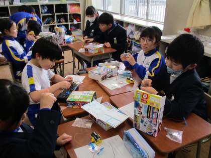 理科では、つまようじや硬貨、クリップ等を使って電気を通す物を調べました。