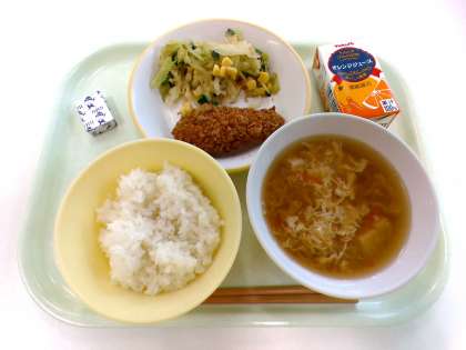 たくさん雪遊びをした後の給食、おいしかったですね。