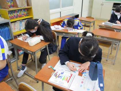 今週は学校給食週間で、毎日の献立を子供たちは楽しみにしていました。動画を見て、調理員や栄養教諭の給食をつくる工夫や思いを知り、感謝の気持ちを手紙に表しました。