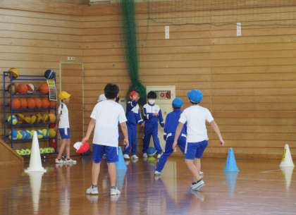 寒い日が続いていますが、朝のトレーニングや体育科の学習の時間には思い切り体を動かしています!