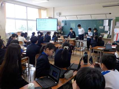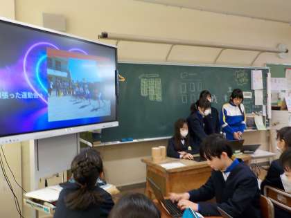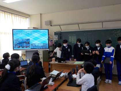 今日は、国語科と総合的な学習の時間を使ってまとめてきた思い出のスライドを見せ合いました。他のグループのよさを取り入れたり、アドバイスし合ったりしました。来週の学習参観で、保護者のみなさんにも見ていただく予定です。