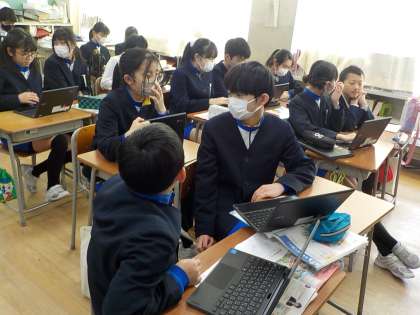 今日の家庭科の時間、感謝の気持ちを伝えようということで、今月末に計画されている感謝の集いに向けて、準備を始めました。今年は、日頃桜っ子がお世話になっている地域のみなさんを招待して、全校で集まる時間と、縦割り班に分かれての時間を作る予定です。1つのグループには2人から4人の6年生がいて、進行を担当します。感謝の気持ちが伝わるにはどんな活動がいいかな、来てくださった方となかよくなるにはどんな活動がいいかなと、考えていました。