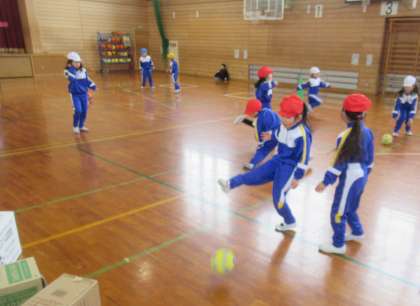 2月7日(水) 【体育科】ボール蹴りゲーム 1年生